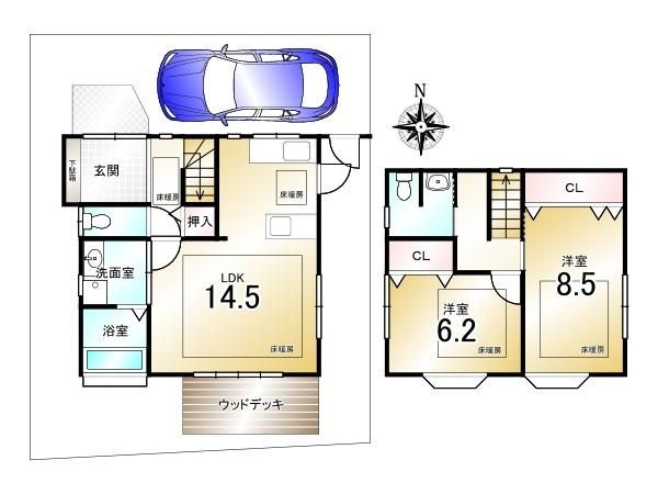 | 間取り詳細 | LDK16.1畳(1F)、洋8.5畳(2F)、洋6.2畳(2F) | 都市計画 | 市街化区域 | ||