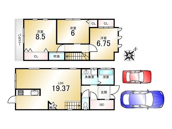 | 間取り詳細 | LDK19.37畳(1F)、洋8.5畳(2F)、洋6.75畳(2F)、洋6畳(2F) | 都市計画 | 市街化区域 |