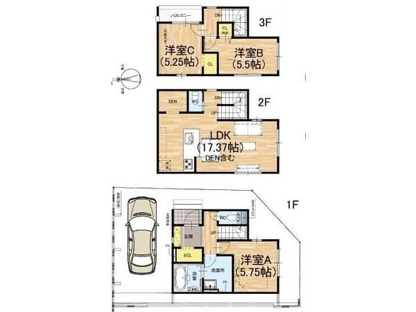 | 間取り詳細 | 洋5.75畳(1F)、LDK17.37畳(2F)、洋5.5畳(3F)、洋5.25畳(3F) | 都市計画 | 市街化区域 |
