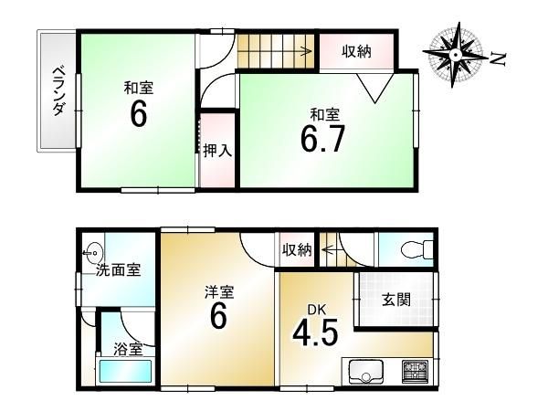 間取り詳細 | DK4.5畳(1F)、洋6畳(1F)、和6.7畳(2F)、和6畳(2F) | 都市計画 | 市街化区域 |