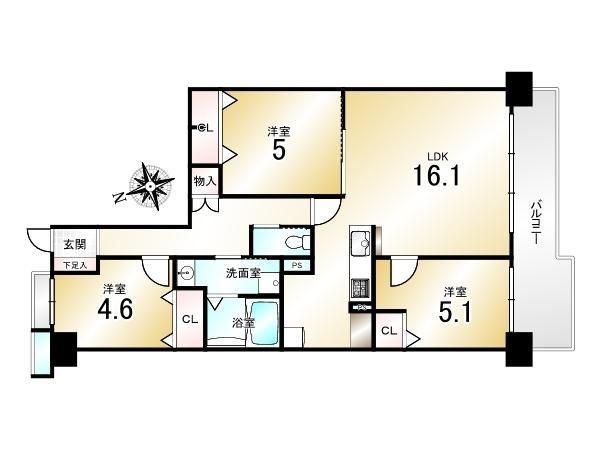 | 間取り詳細 | LDK16.1畳、洋5.1畳、洋5畳、洋4.6畳 | 土地権利 | 所有権 |