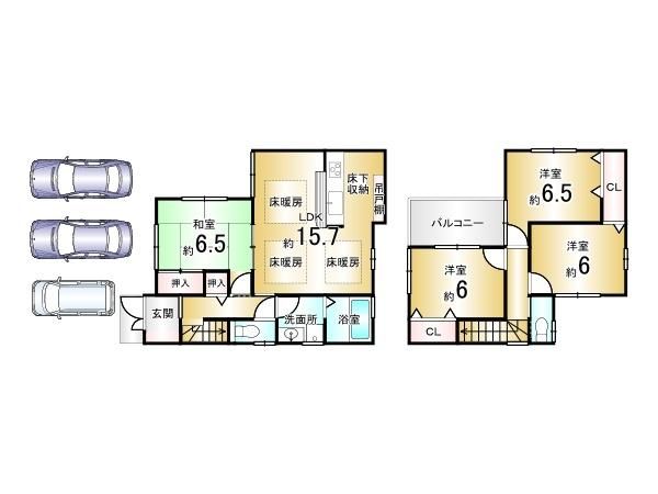 間取り詳細 | LDK15.7畳(1F)、和6.5畳(1F)、洋6.5畳(2F)、洋6畳(2F)、洋6畳(2F) | 都市計画 | 市街化区域 |