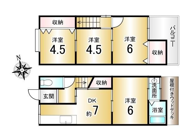 間取り詳細 | DK7畳(1F)、洋6畳(1F)、洋6畳(2F)、洋4.5畳(2F)、洋4.5畳(2F) | 都市計画 | 市街化区域 |