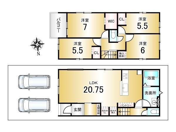 間取り詳細 | LDK20.75畳(1F)、洋7畳(2F)、洋6畳(2F)、洋5.5畳(2F)、洋5.5畳(2F) | 都市計画 | 市街化区域 |
