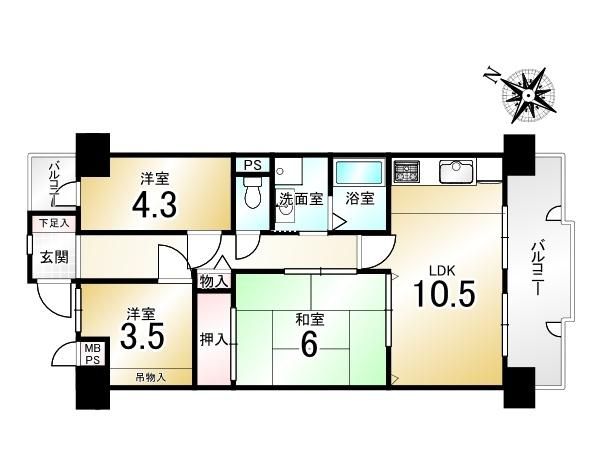 | 間取り詳細 | LDK10.5畳、和6畳、洋4.3畳、洋3.5畳 | 土地権利 | 所有権 |