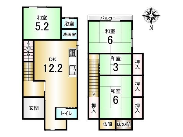 | 間取り詳細 | LDK12.2畳(1F)、和5.2畳(1F)、和6畳(2F)、和6畳(2F)、和3畳(2F) | 都市計画 | 市街化区域 |