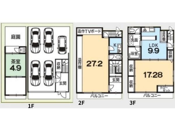 洋27.2畳(2F)、洋17.28畳(3F)、LDK9.9畳(3F) |