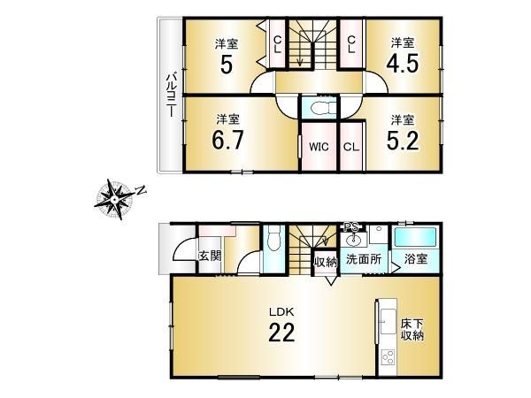 | 間取り詳細 | LDK22畳(1F)、洋6.7畳(2F)、洋5.2畳(2F)、洋5畳(2F)、洋4.5畳(2F) | 都市計画 | 市街化区域 |