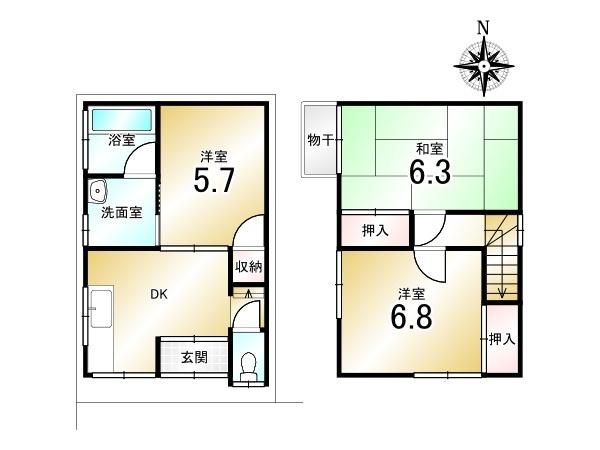 | 間取り詳細 | 洋5.7畳(1F)、洋6.8畳(2F)、和6.3畳(2F) | 都市計画 | 市街化区域 |