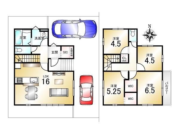 | 間取り詳細 | LDK16畳(1F)、洋6.5畳(2F)、洋5.25畳(2F)、洋4.5畳(2F)、洋4.5畳(2F) | 都市計画 | 市街化区域 |