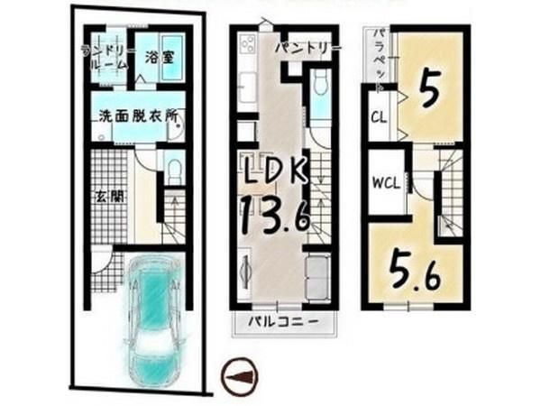 | 間取り詳細 | LDK13.6畳(2F)、洋5.6畳(3F)、洋5畳(3F) | 都市計画 | 市街化区域 |