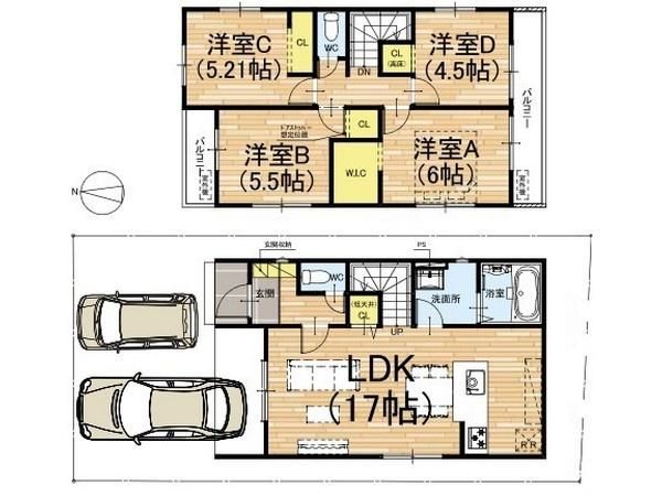 | 間取り詳細 | LDK17畳(1F)、洋6畳(2F)、洋5.5畳(2F)、洋5.21畳(2F)、洋4.5畳(2F) | 都市計画 | 市街化区域 |