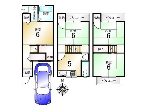 | 間取り詳細 | 洋6畳(1F)、和6畳(2F)、K5畳(2F)、和6畳(3F)、和6畳(3F) | 都市計画 | 市街化区域 | ||
