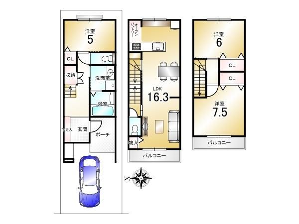 | 間取り詳細 | 洋5畳(1F)、LDK16.3畳(2F)、洋7.5畳(3F)、洋6畳(3F) | 都市計画 | 市街化区域 |
