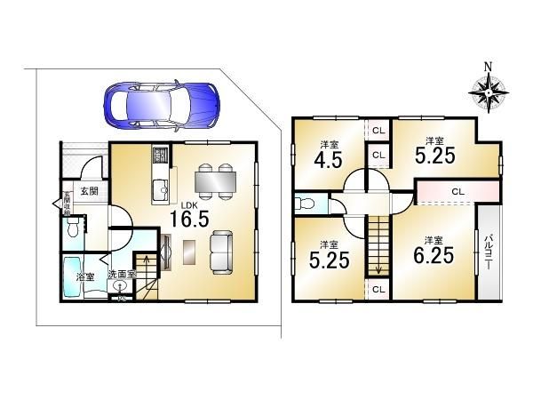 | 間取り詳細 | LDK16.5畳(1F)、洋6.25畳(2F)、洋5.25畳(2F)、洋5.25畳(2F)、洋4.5畳(2F) | 都市計画 | 市街化区域 |