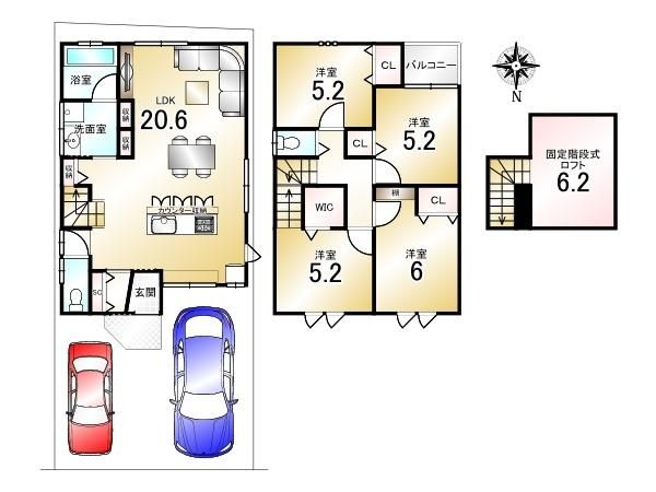 | 間取り詳細 | LDK20.6畳(1F)、洋6畳(2F)、洋5.2畳(2F)、洋5.2畳(2F)、洋5.2畳(2F) | 都市計画 | 市街化区域 |