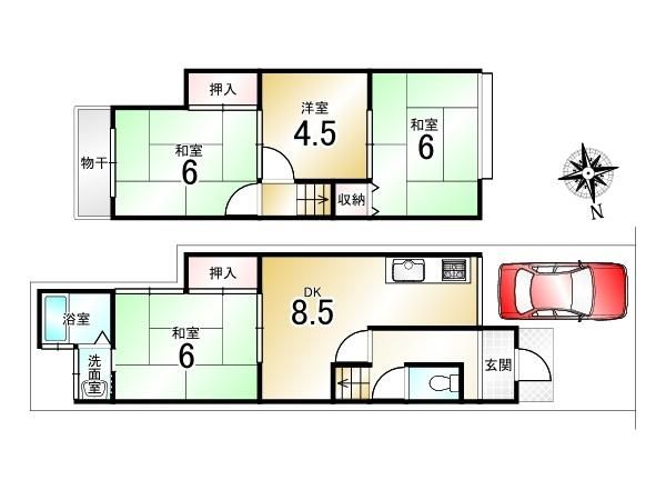 | 間取り詳細 | DK8.5畳(1F)、和6畳(1F)、和6畳(2F)、和6畳(2F)、洋4.5畳(2F) | 都市計画 | 市街化区域 | ||
