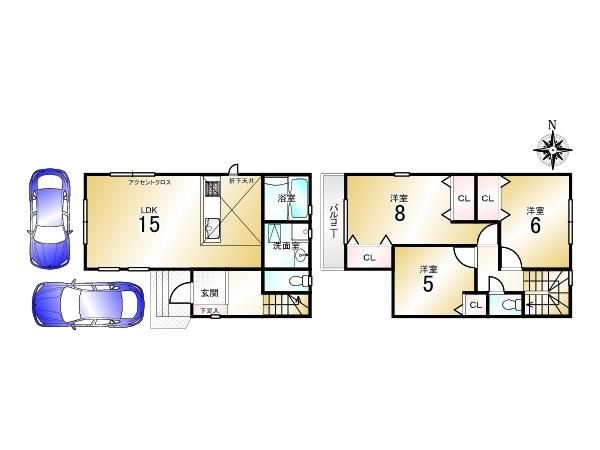 | 間取り詳細 | LDK15畳(1F)、洋8畳(2F)、洋6畳(2F)、洋5畳(2F) | 都市計画 | 市街化区域 |