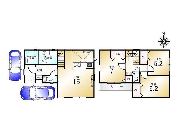 | 間取り詳細 | LDK15畳(1F)、洋7畳(2F)、洋6.2畳(2F)、洋5.2畳(2F) | 都市計画 | 市街化区域 |