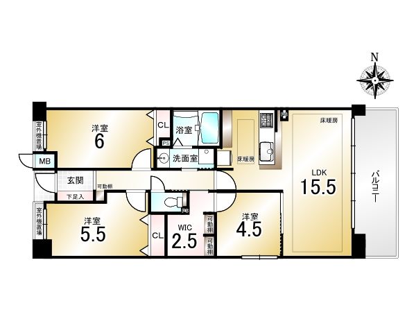 | 間取り詳細 | LDK15.5畳、洋6畳、和5.5畳、洋4.5畳 | 土地権利 | 所有権 |