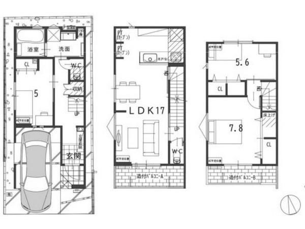 | 間取り詳細 | S5畳(1F)、LDK17畳(2F)、洋7.8畳(3F)、洋5.6畳(3F) | 都市計画 | 市街化区域 |
