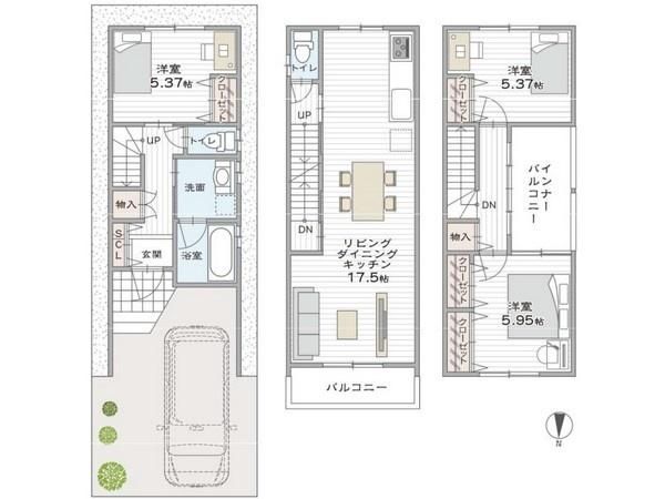 | 間取り詳細 | 洋5.37畳(1F)、LDK17.5畳(2F)、洋5.95畳(3F)、洋5.37畳(3F) | 都市計画 | 市街化区域 |
