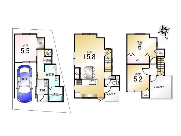 | 間取り詳細 | S5.5畳(1F)、LDK15.8畳(2F)、洋6畳(3F)、洋5.2畳(3F) | 都市計画 | 市街化区域 |