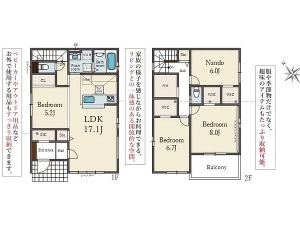 | 間取り詳細 | LDK17.1畳(1F)、洋5.2畳(1F)、洋8畳(2F)、洋6.7畳(2F)、S6畳(2F) | 都市計画 | 市街化区域 |