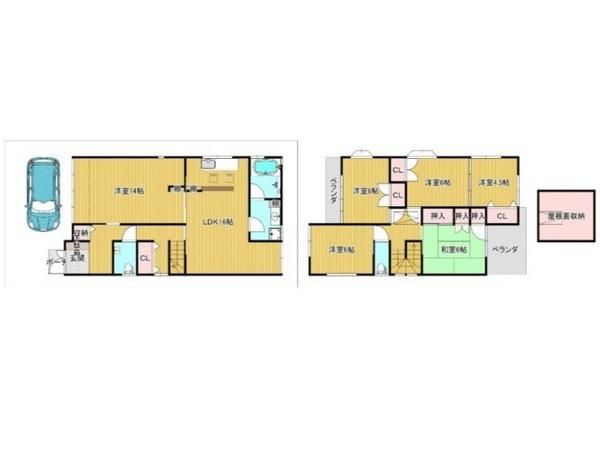 | 間取り詳細 | LDK16畳(1F)、洋14畳(1F)、洋6畳(2F)、洋6畳(2F)、洋6畳(2F)、和6畳(2F)、洋4.5畳(2F) | 都市計画 | 市街化区域 |