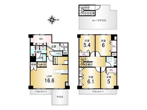 | 間取り詳細 | LDK16.6畳、洋6.1畳、洋6畳、洋5.4畳、洋5畳 | 土地権利 | 所有権 |