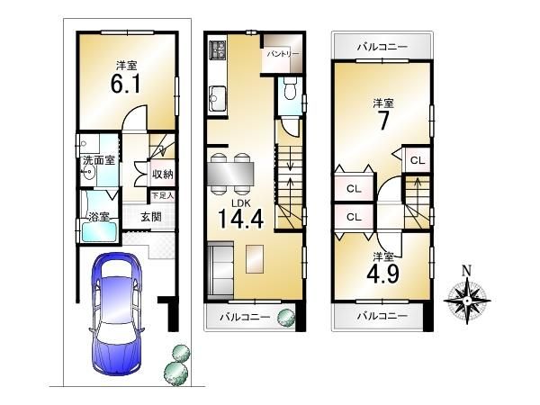 | 間取り詳細 | 洋6.1畳(1F)、LDK14.4畳(2F)、洋7畳(3F)、洋4.9畳(3F) | 都市計画 | 市街化区域 |