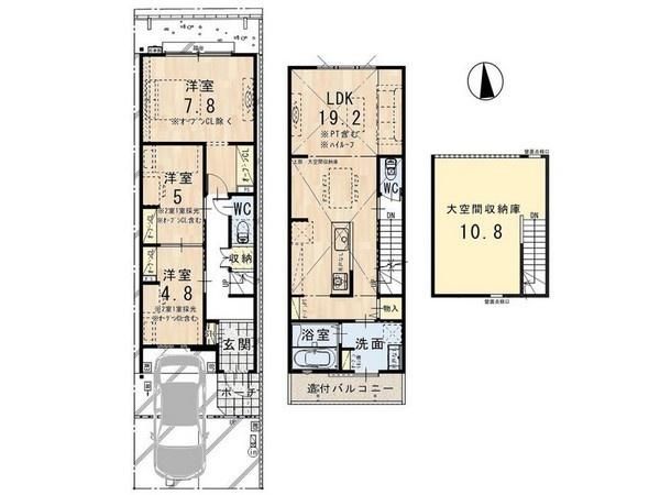 | 間取り詳細 | 洋7.8畳(1F)、洋5畳(1F)、洋4.8畳(1F)、LDK19.2畳(2F) | 都市計画 | 市街化区域 |