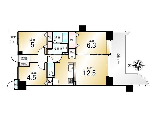 | 間取り詳細 | LDK12.5畳、洋6.3畳、洋5畳、洋4.5畳 | 土地権利 | 所有権 |