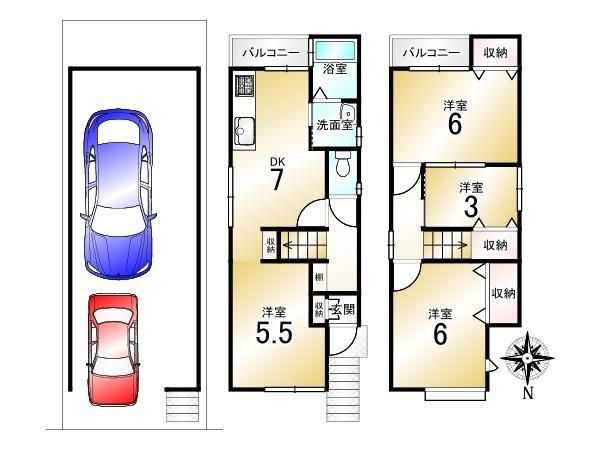 | 間取り詳細 | DK7畳(2F)、洋5.5畳(2F)、洋6畳(3F)、洋6畳(2F)、洋3畳(2F) | 都市計画 | 市街化区域 |
