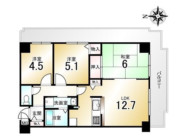 | 間取り詳細 | LDK12.7畳、和6畳、洋5.1畳、洋4.5畳 | 土地権利 | 所有権 |