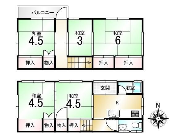 | 間取り詳細 | K(1F)、和4.5畳(1F)、和4.5畳(1F)、和6畳(2F)、和4.5畳(2F)、和3畳(2F) | 都市計画 | 市街化区域 |