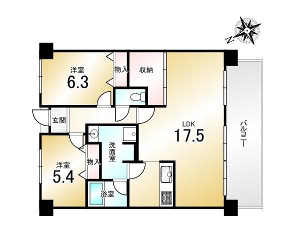 | 間取り詳細 | LDK17.5畳、洋6.3畳、洋5.4畳 | 土地権利 | 所有権 |